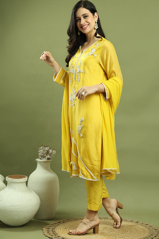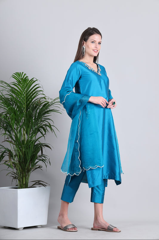 Shirt- Chanderi, Pants- Cotton Santoon, Dupatta - Chanderi